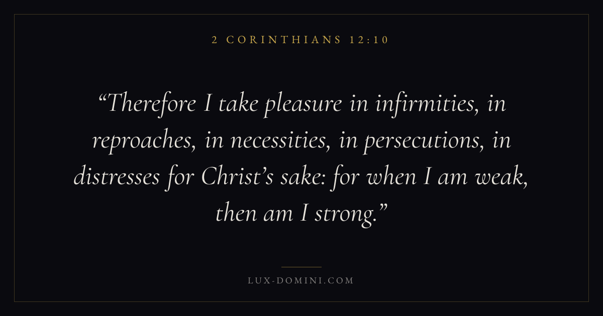 Therefore I take pleasure in infirmities, in reproaches, in necessities, in persecutions, in distresses for Christ’s sake: for when I am weak, then am I strong.