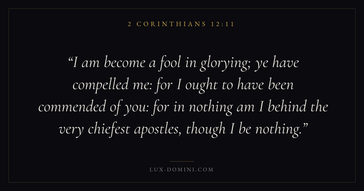 I am become a fool in glorying; ye have compelled me: for I ought to have been commended of you: for in nothing am I behind the very chiefest apostles, though I be nothing.