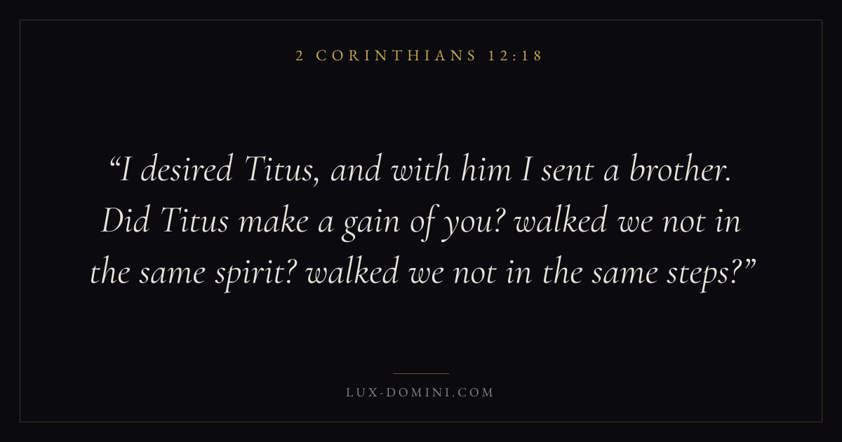 I desired Titus, and with him I sent a brother. Did Titus make a gain of you? walked we not in the same spirit? walked we not in the same steps?