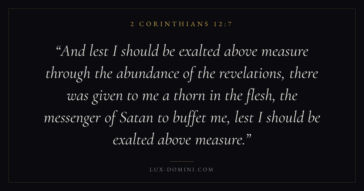 And lest I should be exalted above measure through the abundance of the revelations, there was given to me a thorn in the flesh, the messenger of Satan to buffet me, lest I should be exalted above measure.