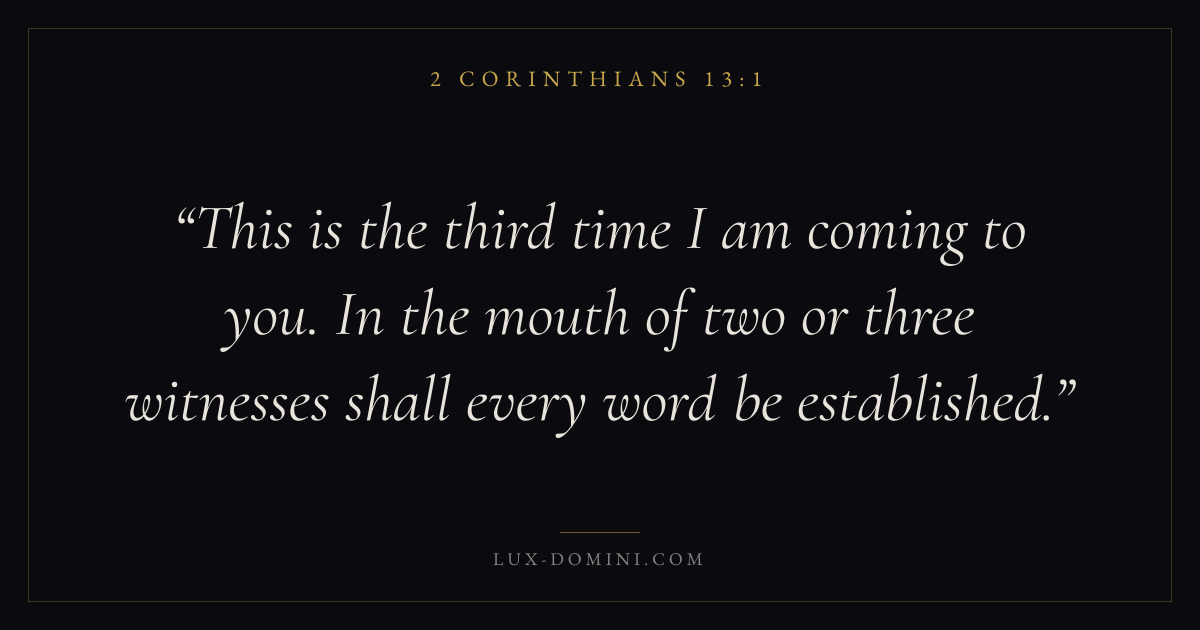 This is the third time I am coming to you. In the mouth of two or three witnesses shall every word be established.
