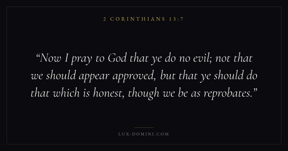 Now I pray to God that ye do no evil; not that we should appear approved, but that ye should do that which is honest, though we be as reprobates.