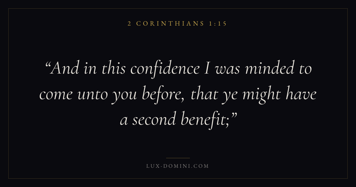 And in this confidence I was minded to come unto you before, that ye might have a second benefit;