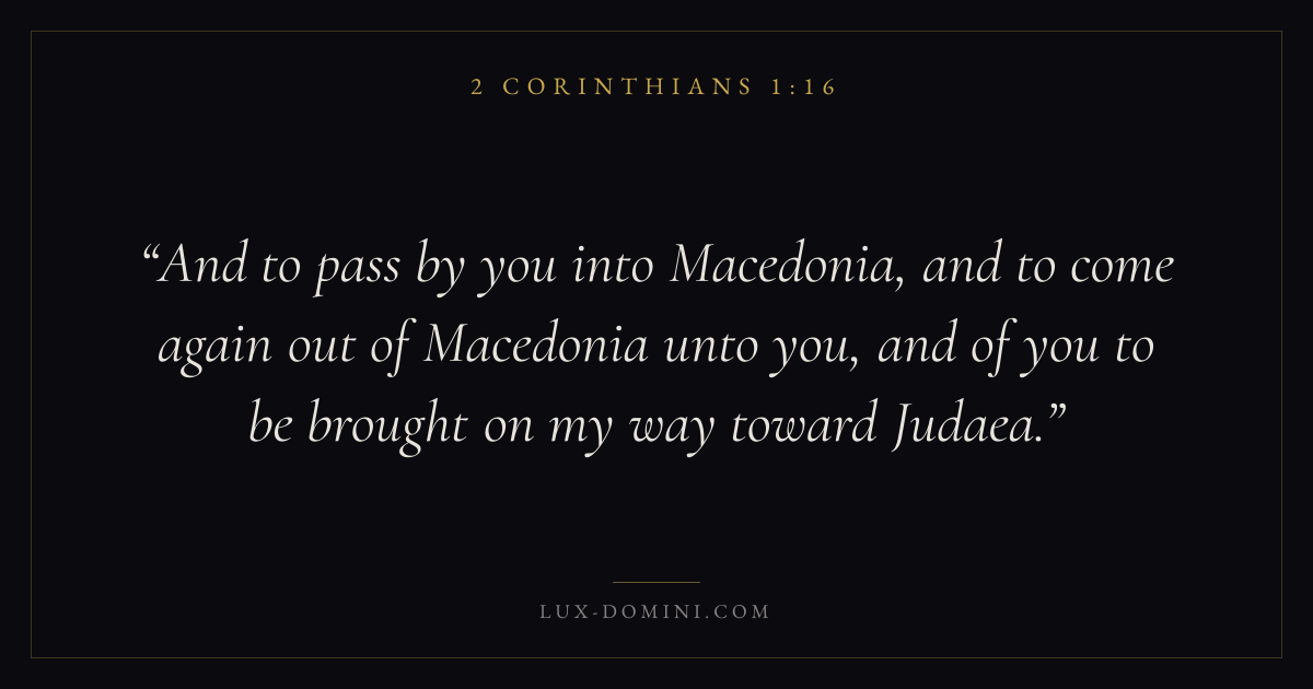 And to pass by you into Macedonia, and to come again out of Macedonia unto you, and of you to be brought on my way toward Judaea.