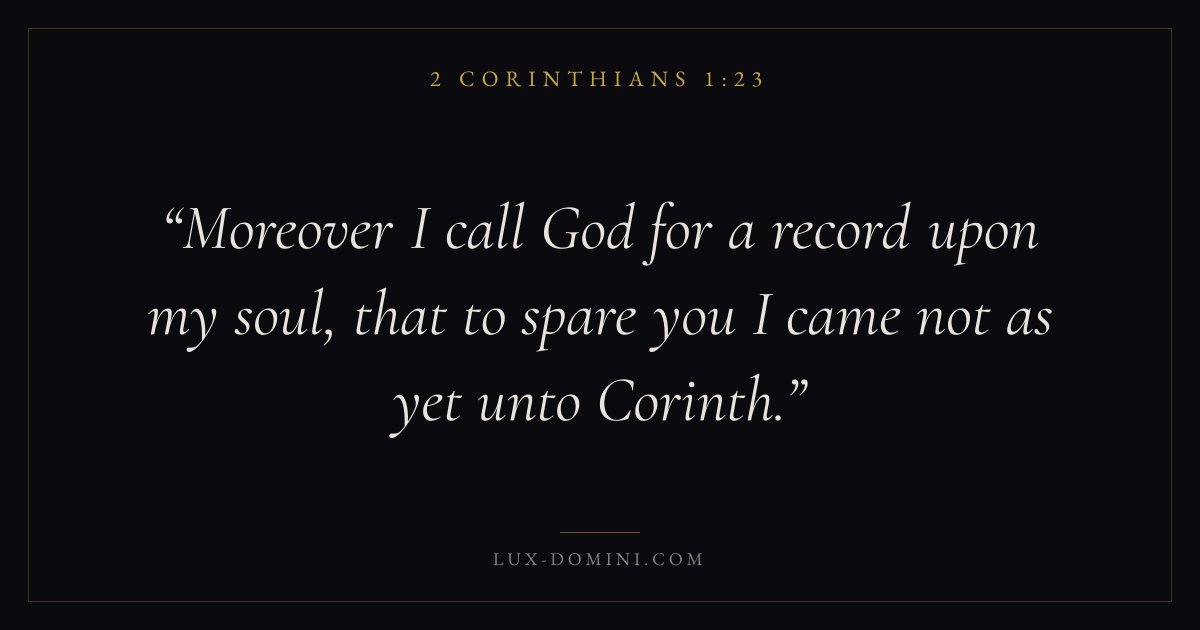 Moreover I call God for a record upon my soul, that to spare you I came not as yet unto Corinth.