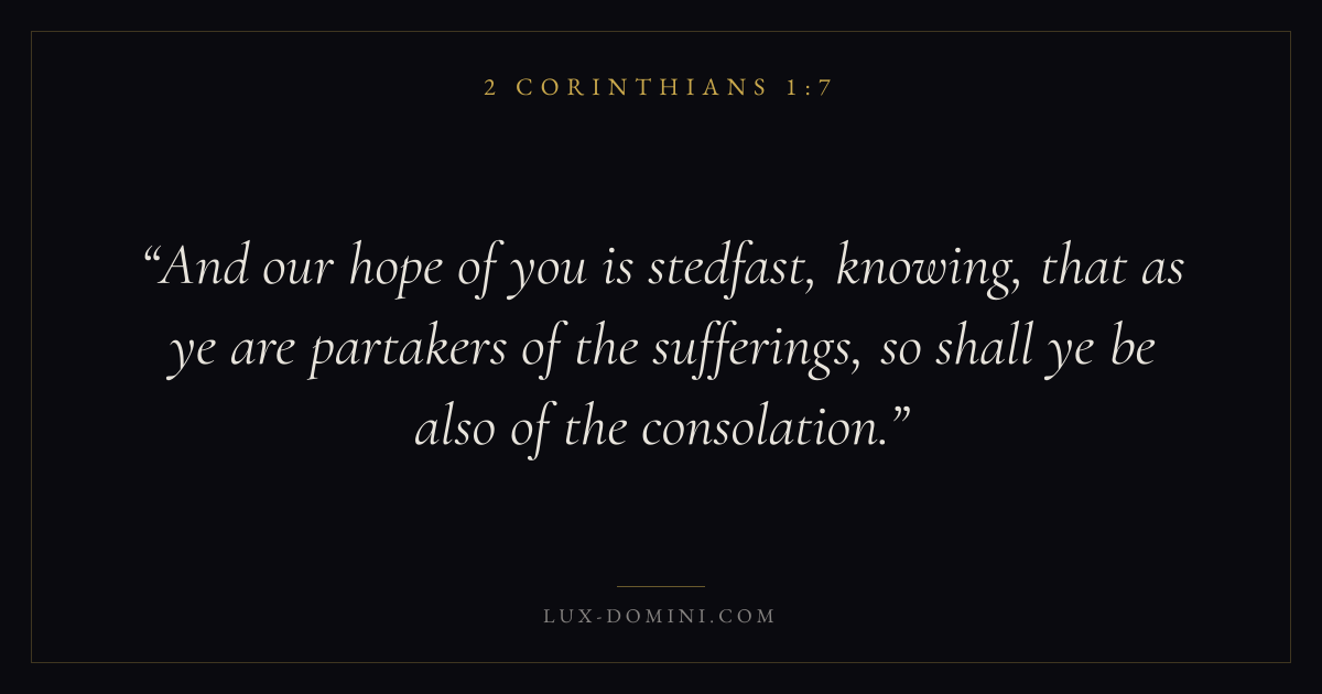 And our hope of you is stedfast, knowing, that as ye are partakers of the sufferings, so shall ye be also of the consolation.