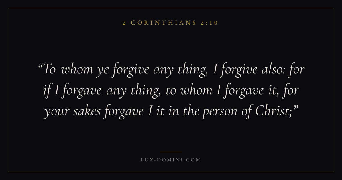 To whom ye forgive any thing, I forgive also: for if I forgave any thing, to whom I forgave it, for your sakes forgave I it in the person of Christ;