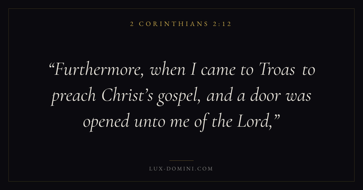 Furthermore, when I came to Troas to preach Christ’s gospel, and a door was opened unto me of the Lord,