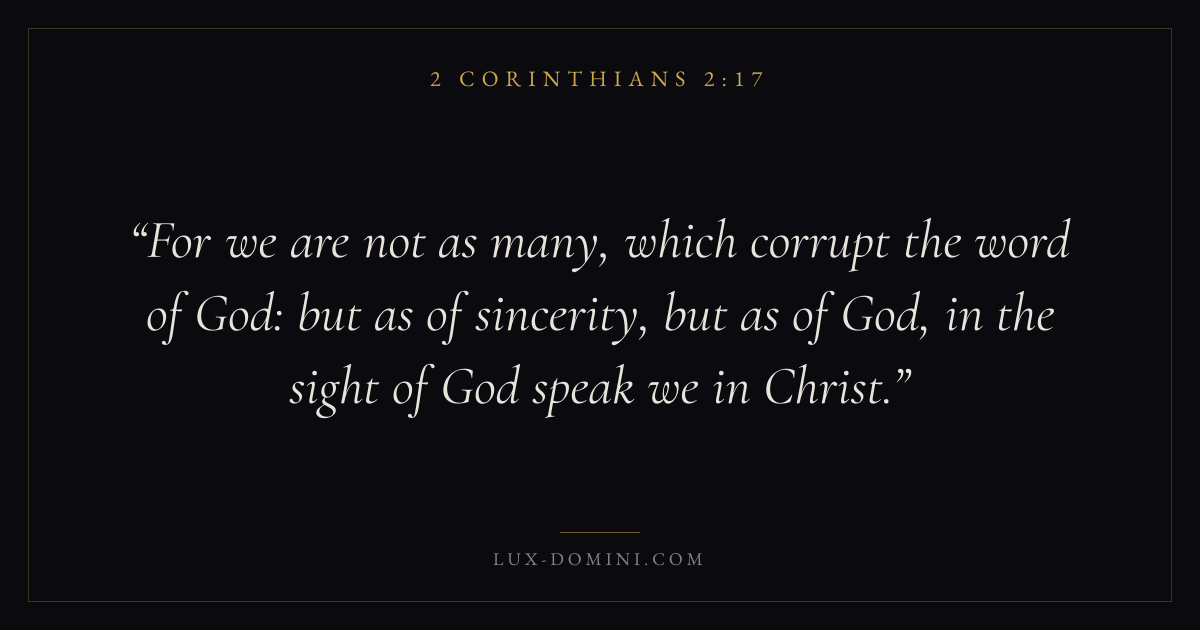 For we are not as many, which corrupt the word of God: but as of sincerity, but as of God, in the sight of God speak we in Christ.