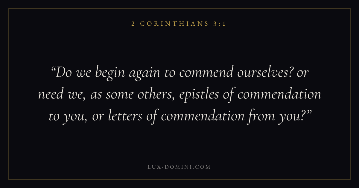 Do we begin again to commend ourselves? or need we, as some others, epistles of commendation to you, or letters of commendation from you?