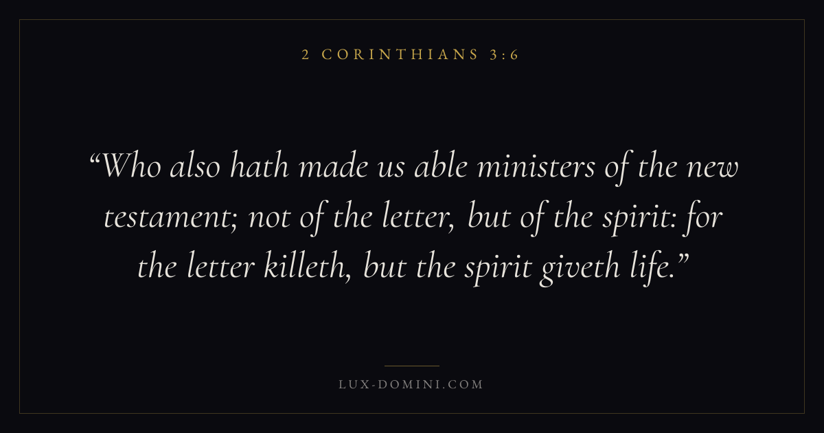 Who also hath made us able ministers of the new testament; not of the letter, but of the spirit: for the letter killeth, but the spirit giveth life.