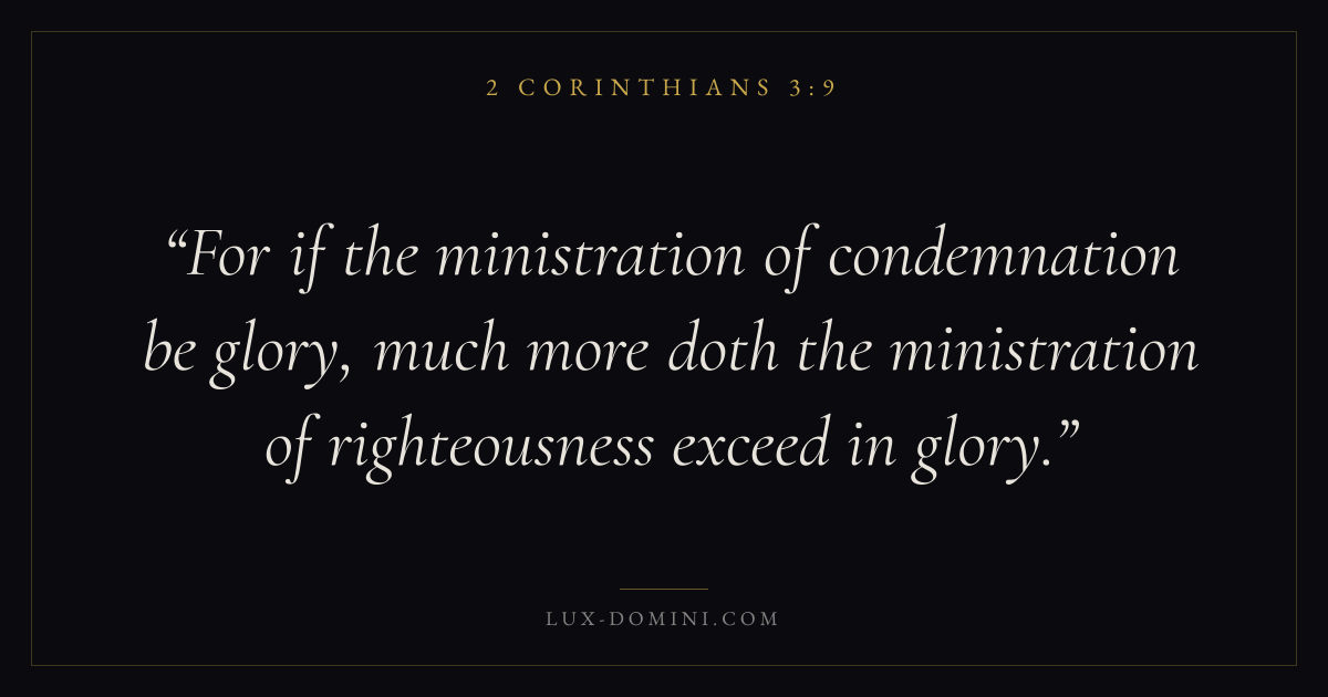 For if the ministration of condemnation be glory, much more doth the ministration of righteousness exceed in glory.