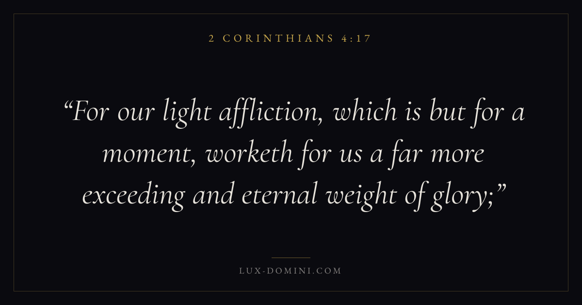 For our light affliction, which is but for a moment, worketh for us a far more exceeding and eternal weight of glory;