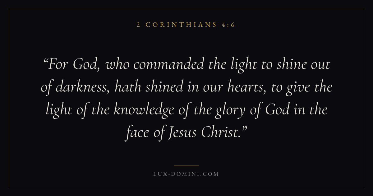 For God, who commanded the light to shine out of darkness, hath shined in our hearts, to give the light of the knowledge of the glory of God in the face of Jesus Christ.