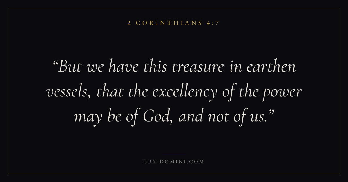 But we have this treasure in earthen vessels, that the excellency of the power may be of God, and not of us.