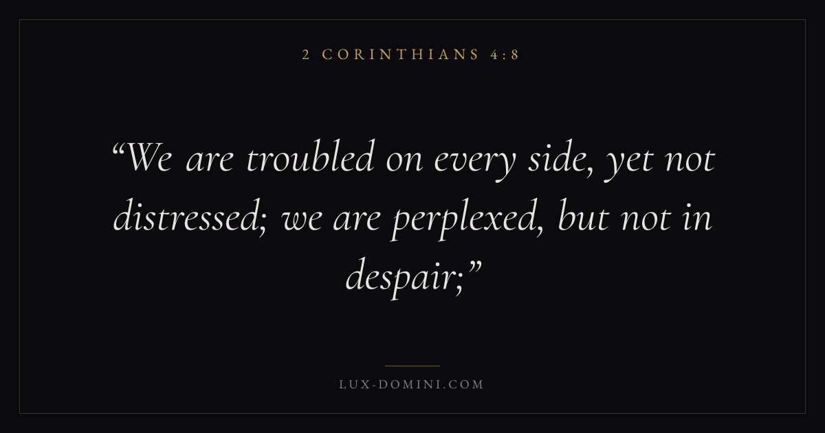 We are troubled on every side, yet not distressed; we are perplexed, but not in despair;