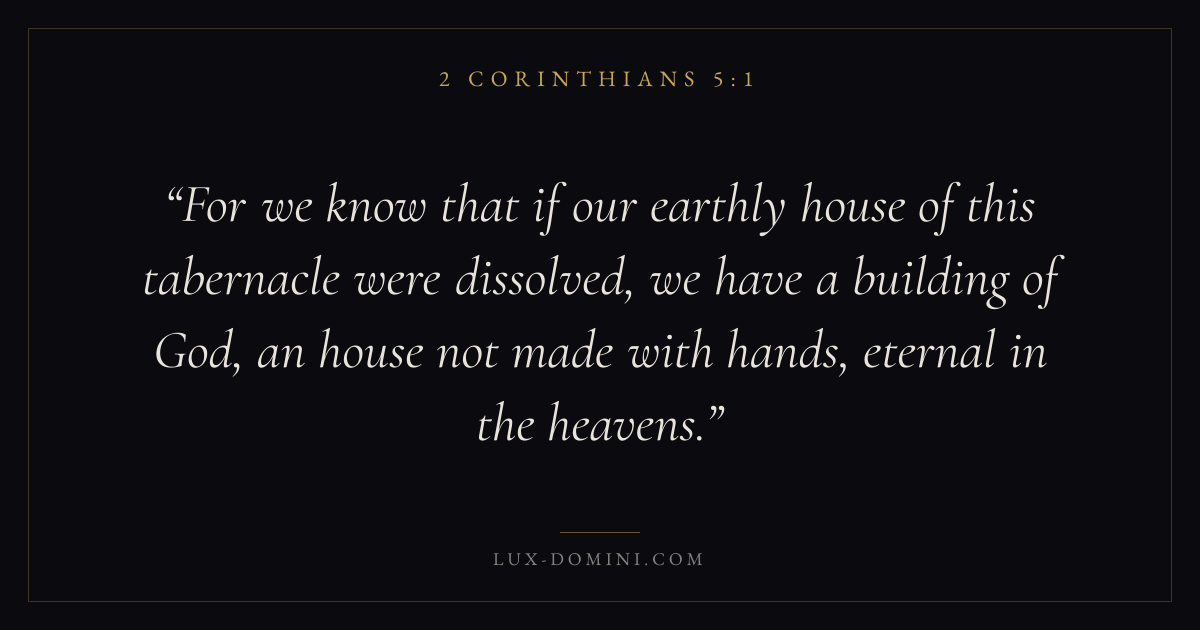 For we know that if our earthly house of this tabernacle were dissolved, we have a building of God, an house not made with hands, eternal in the heavens.