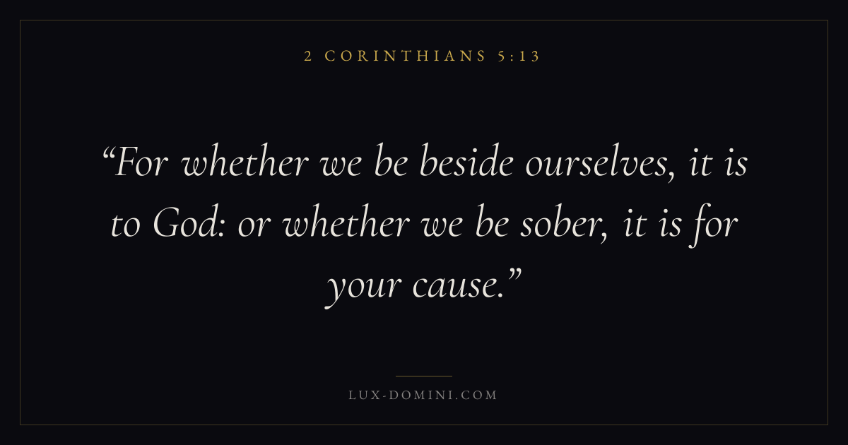 For whether we be beside ourselves, it is to God: or whether we be sober, it is for your cause.