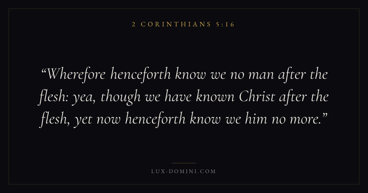 Wherefore henceforth know we no man after the flesh: yea, though we have known Christ after the flesh, yet now henceforth know we him no more.