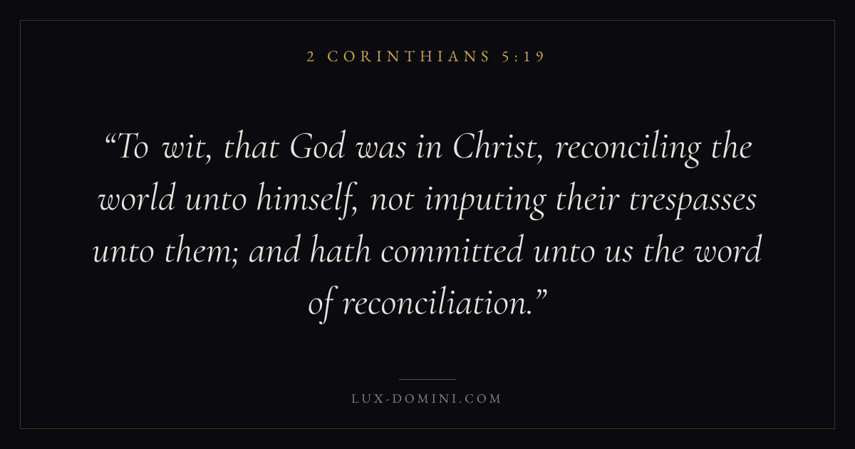 To wit, that God was in Christ, reconciling the world unto himself, not imputing their trespasses unto them; and hath committed unto us the word of reconciliation.