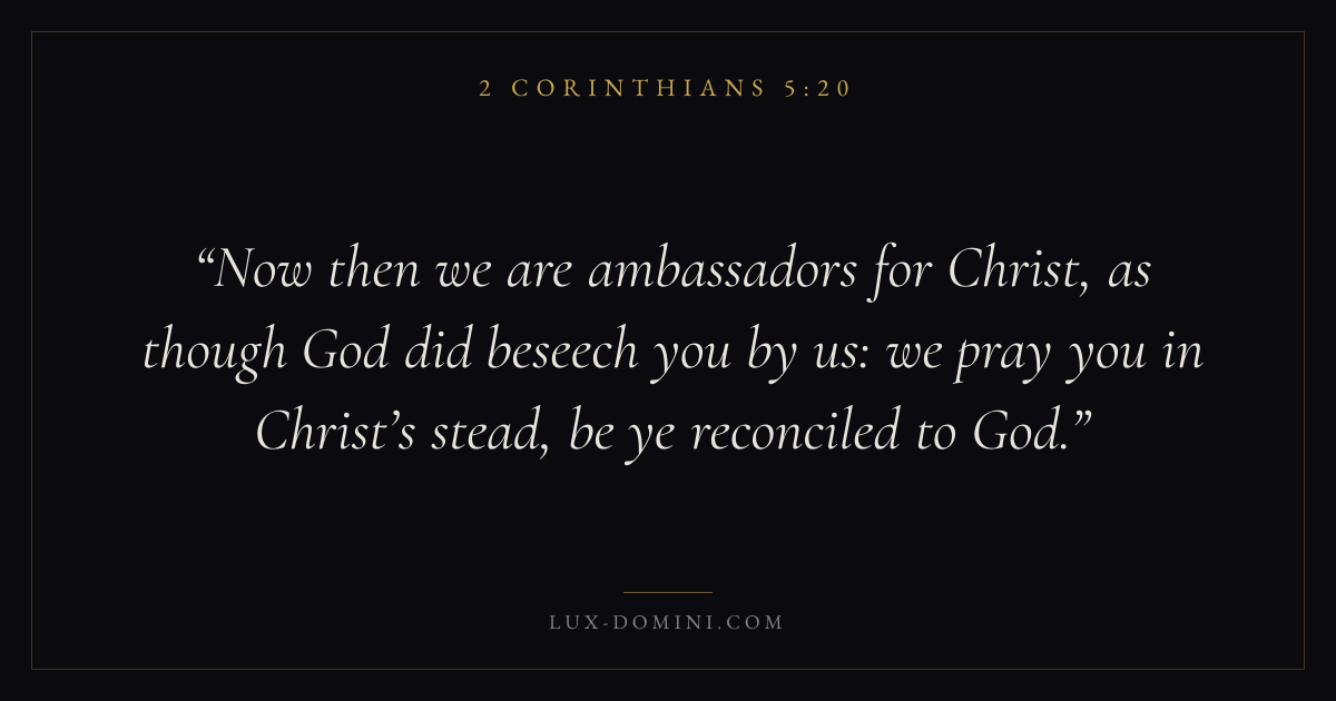 Now then we are ambassadors for Christ, as though God did beseech you by us: we pray you in Christ’s stead, be ye reconciled to God.