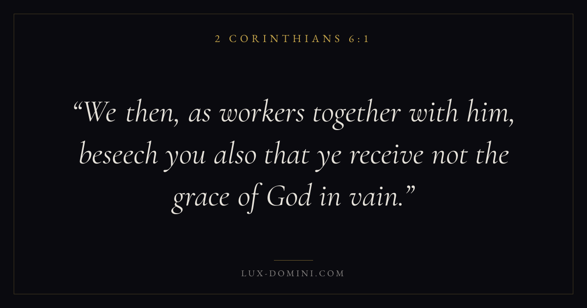 We then, as workers together with him, beseech you also that ye receive not the grace of God in vain.