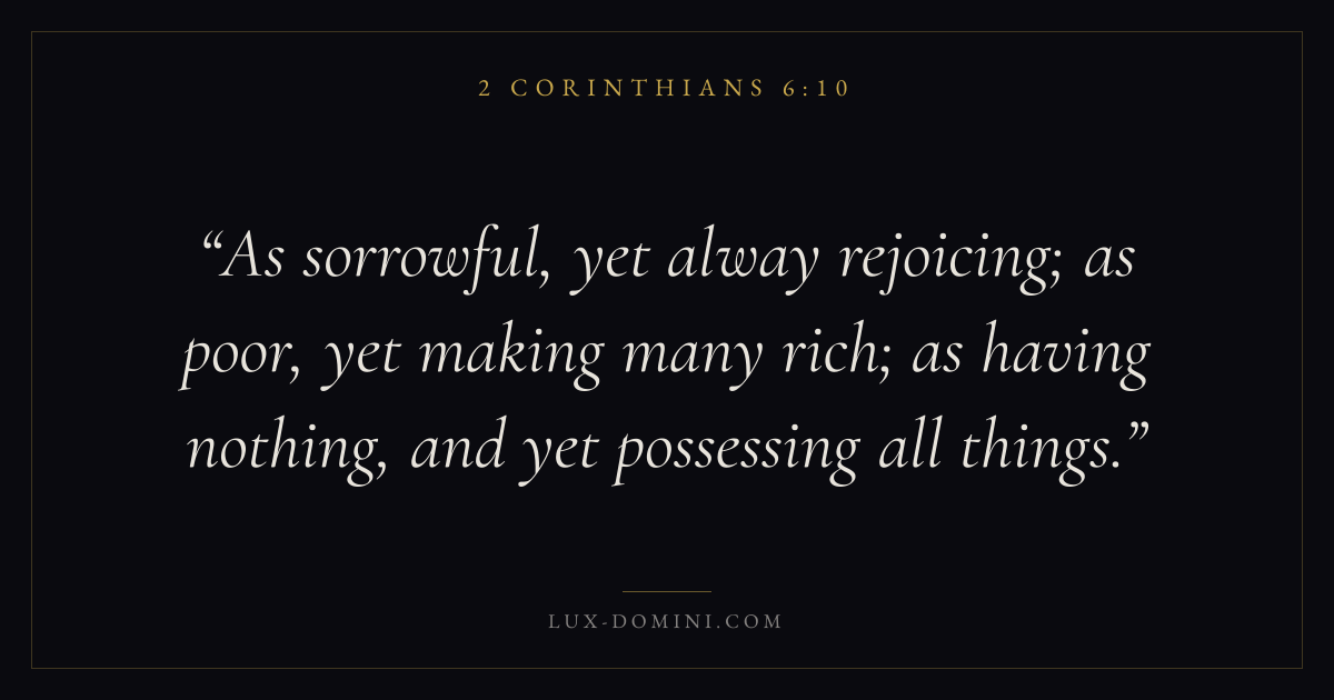 As sorrowful, yet alway rejoicing; as poor, yet making many rich; as having nothing, and yet possessing all things.
