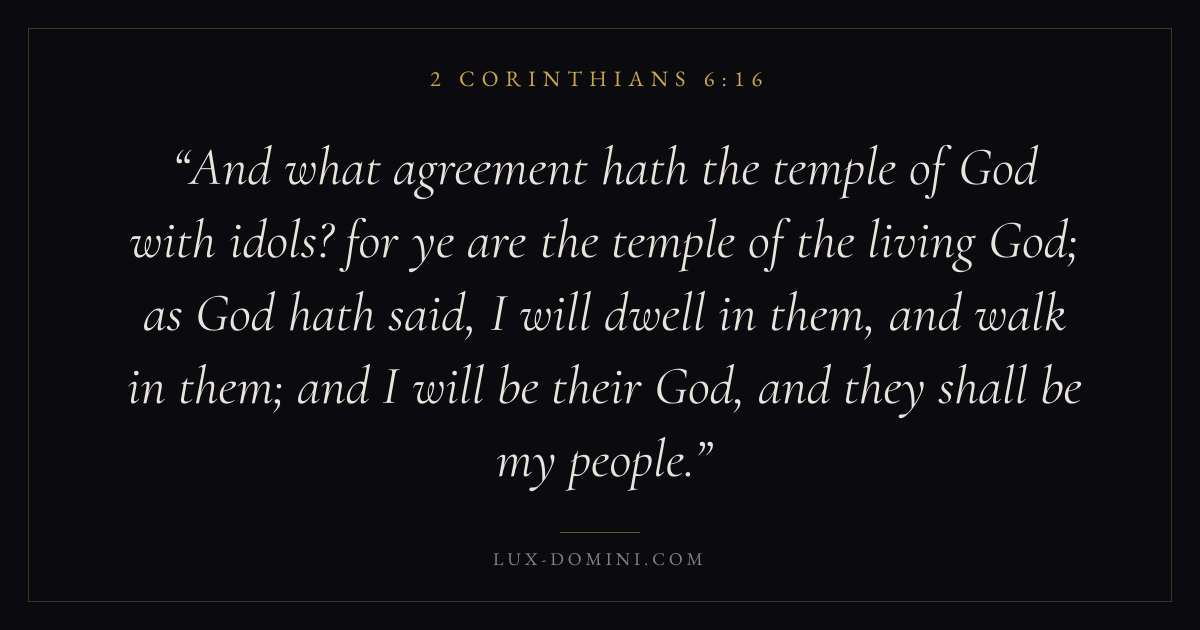 And what agreement hath the temple of God with idols? for ye are the temple of the living God; as God hath said, I will dwell in them, and walk in them; and I will be their God, and they shall be my people.
