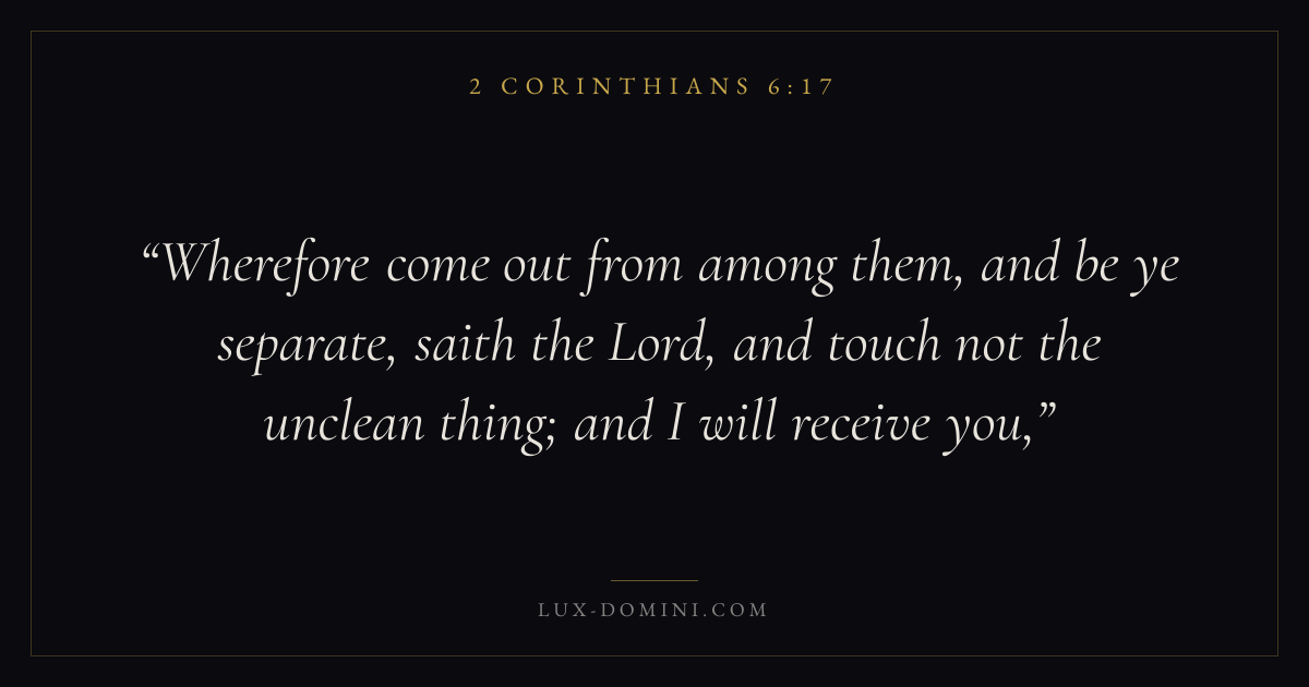 Wherefore come out from among them, and be ye separate, saith the Lord, and touch not the unclean thing; and I will receive you,