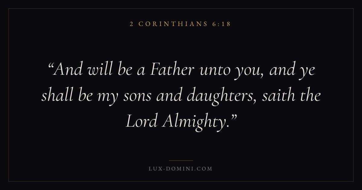 And will be a Father unto you, and ye shall be my sons and daughters, saith the Lord Almighty.