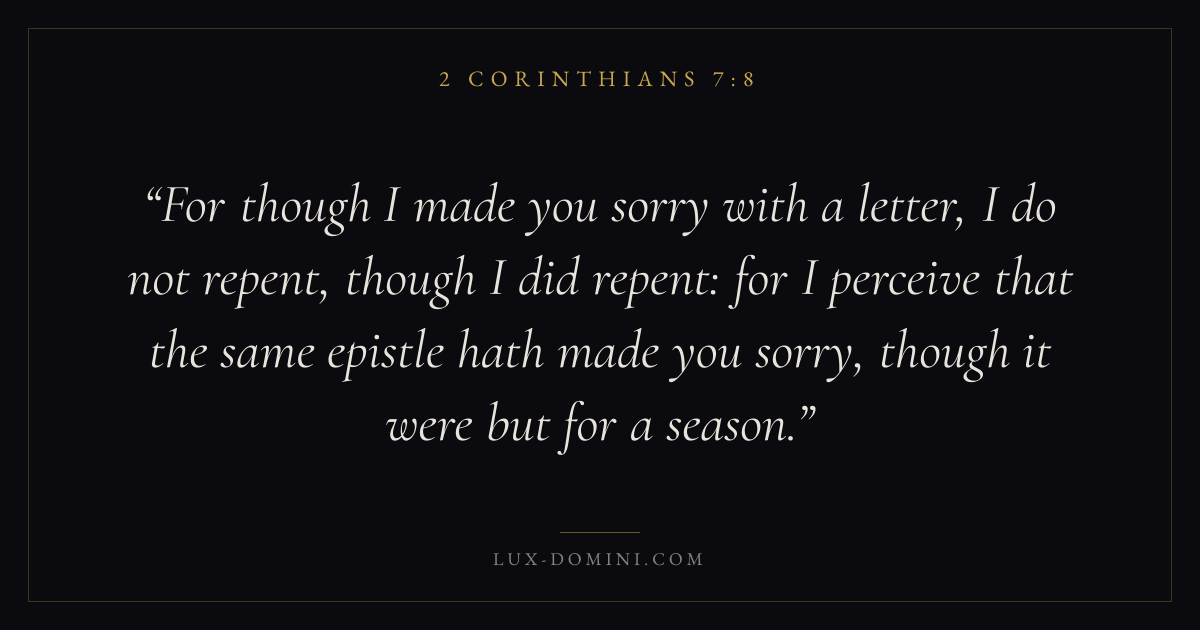 For though I made you sorry with a letter, I do not repent, though I did repent: for I perceive that the same epistle hath made you sorry, though it were but for a season.