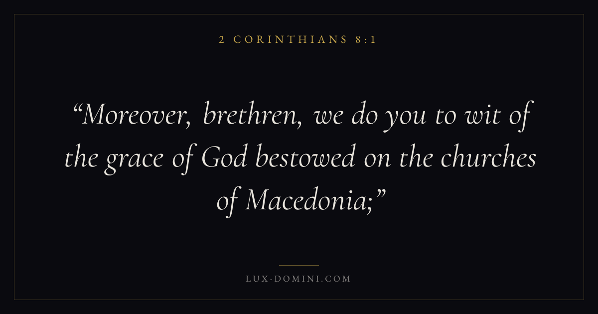 Moreover, brethren, we do you to wit of the grace of God bestowed on the churches of Macedonia;