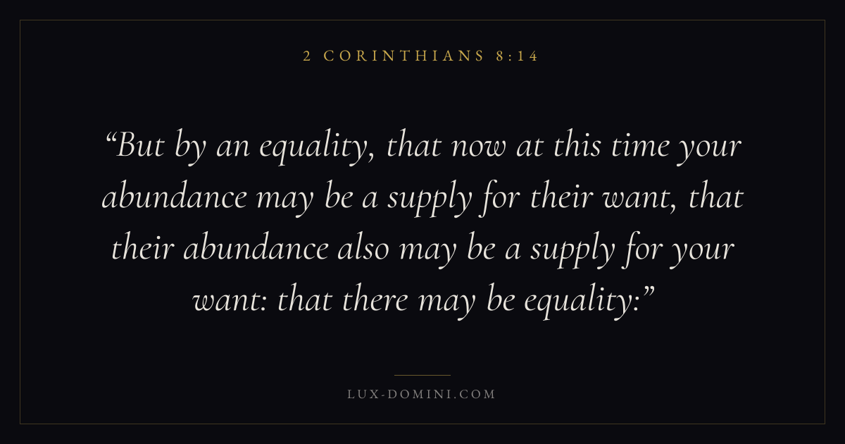 But by an equality, that now at this time your abundance may be a supply for their want, that their abundance also may be a supply for your want: that there may be equality: