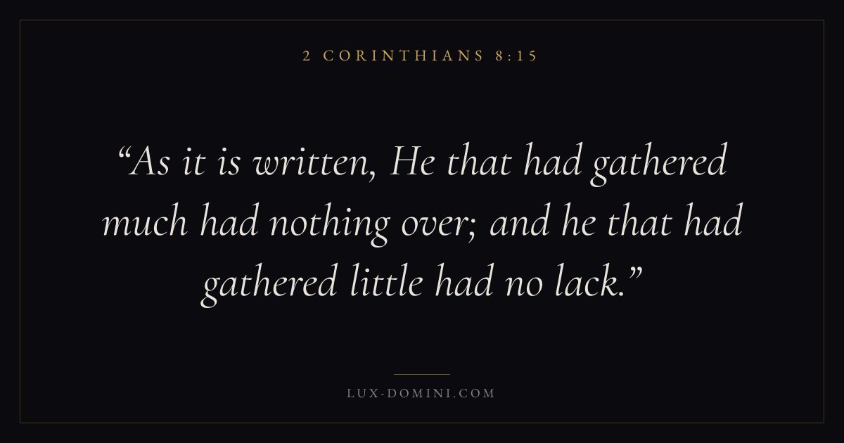 As it is written, He that had gathered much had nothing over; and he that had gathered little had no lack.