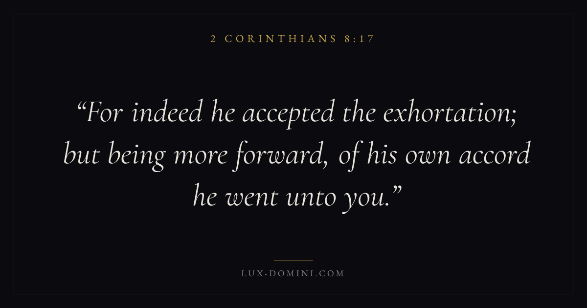For indeed he accepted the exhortation; but being more forward, of his own accord he went unto you.