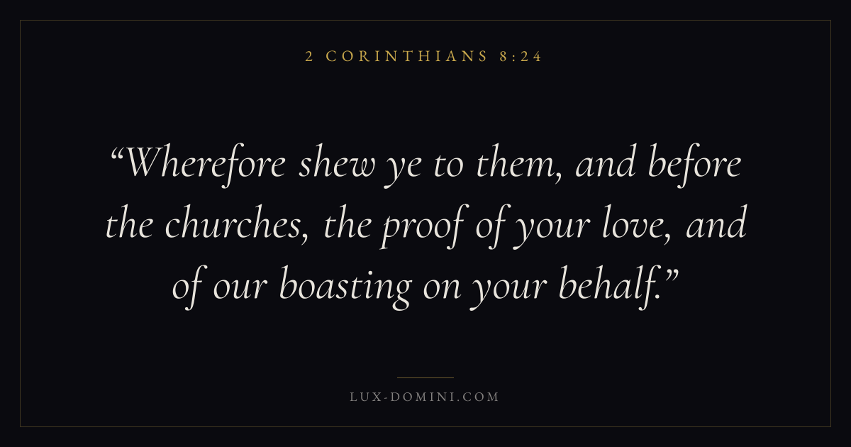 Wherefore shew ye to them, and before the churches, the proof of your love, and of our boasting on your behalf.