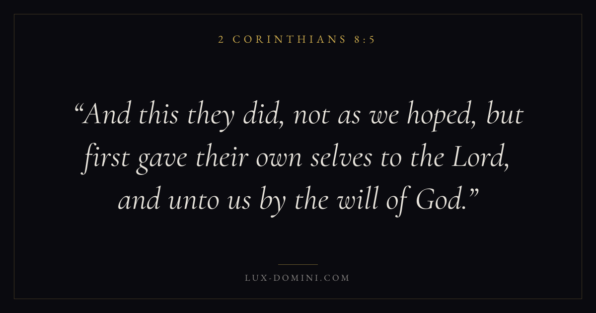 And this they did, not as we hoped, but first gave their own selves to the Lord, and unto us by the will of God.