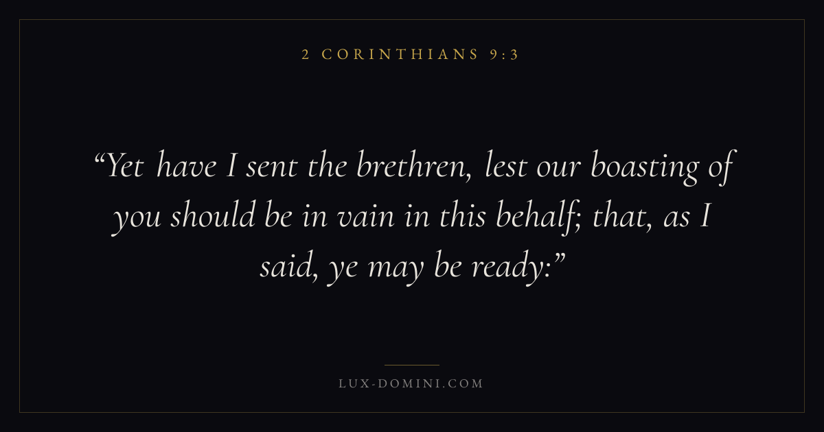 What does 2 Corinthians 9:3 mean?