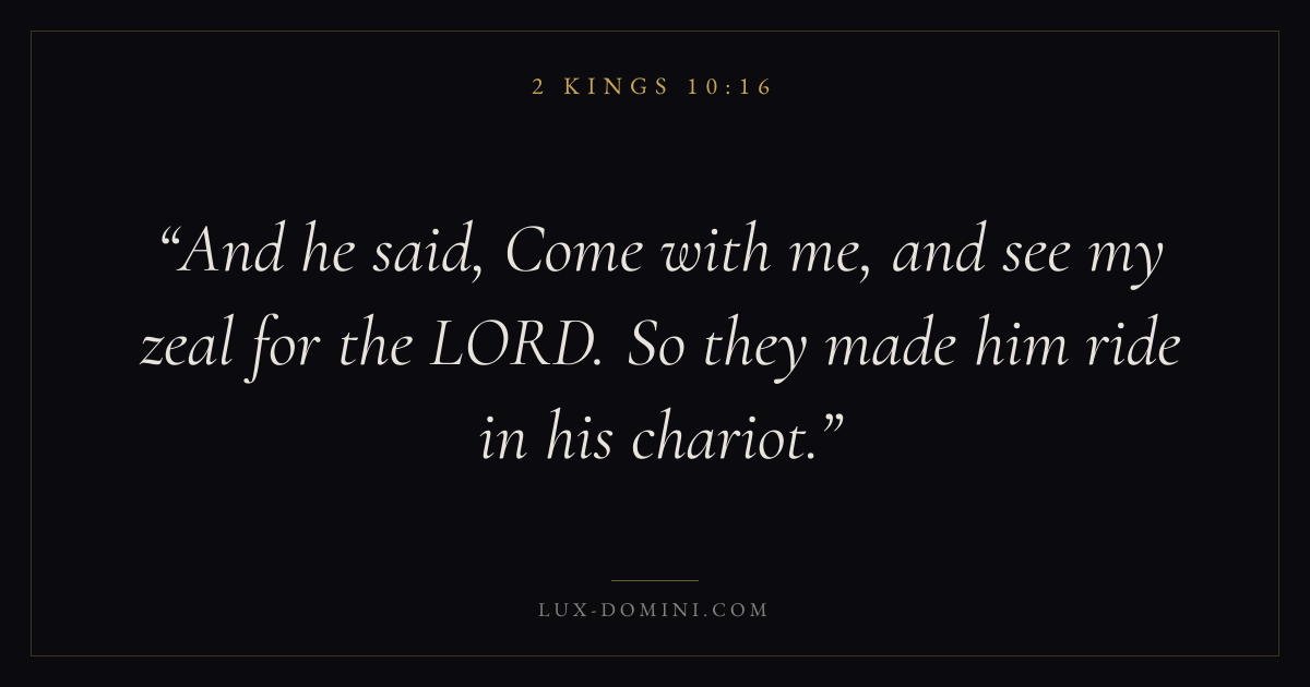 And he said, Come with me, and see my zeal for the LORD. So they made him ride in his chariot.