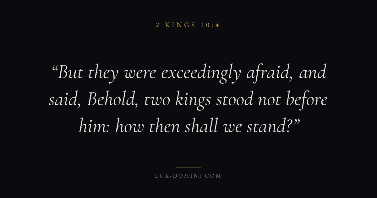But they were exceedingly afraid, and said, Behold, two kings stood not before him: how then shall we stand?