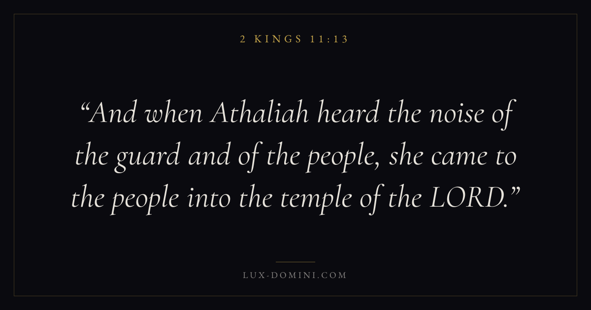 And when Athaliah heard the noise of the guard and of the people, she came to the people into the temple of the LORD.