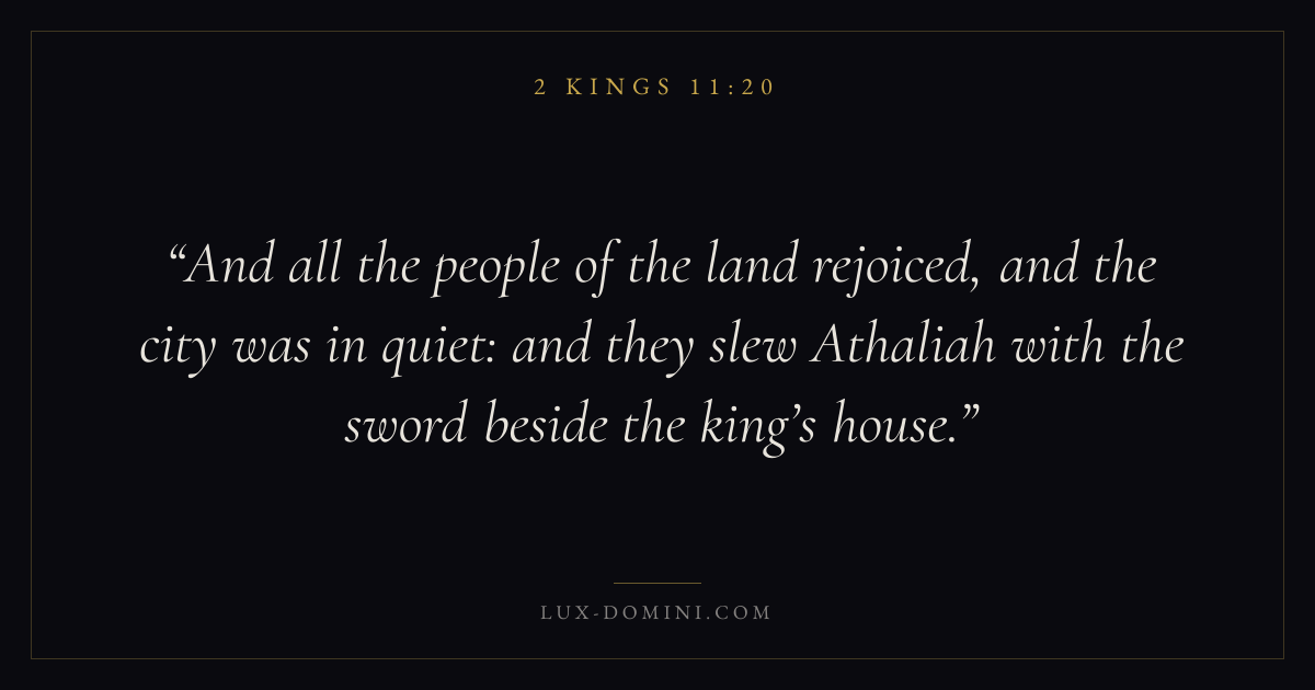 And all the people of the land rejoiced, and the city was in quiet: and they slew Athaliah with the sword beside the king’s house.