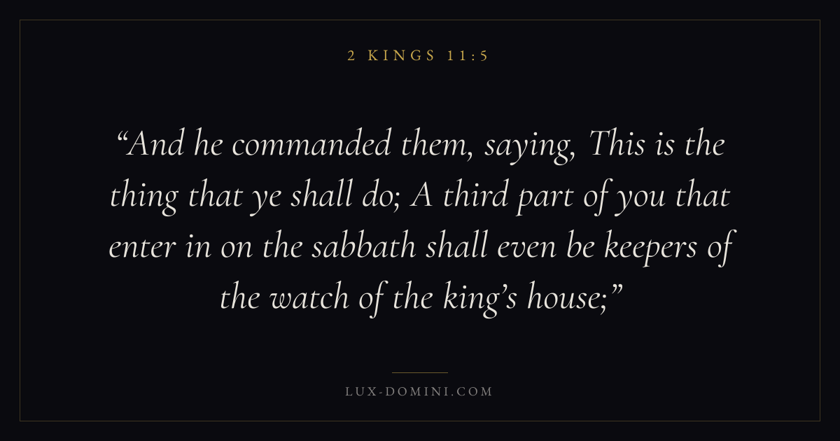 And he commanded them, saying, This is the thing that ye shall do; A third part of you that enter in on the sabbath shall even be keepers of the watch of the king’s house;