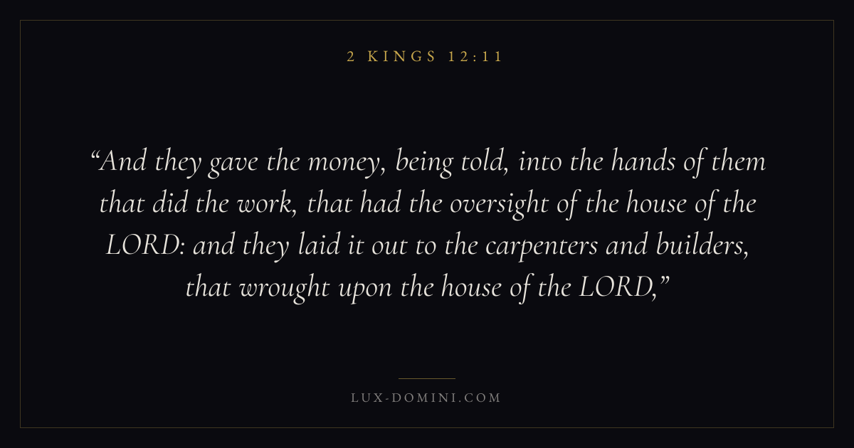 And they gave the money, being told, into the hands of them that did the work, that had the oversight of the house of the LORD: and they laid it out to the carpenters and builders, that wrought upon the house of the LORD,