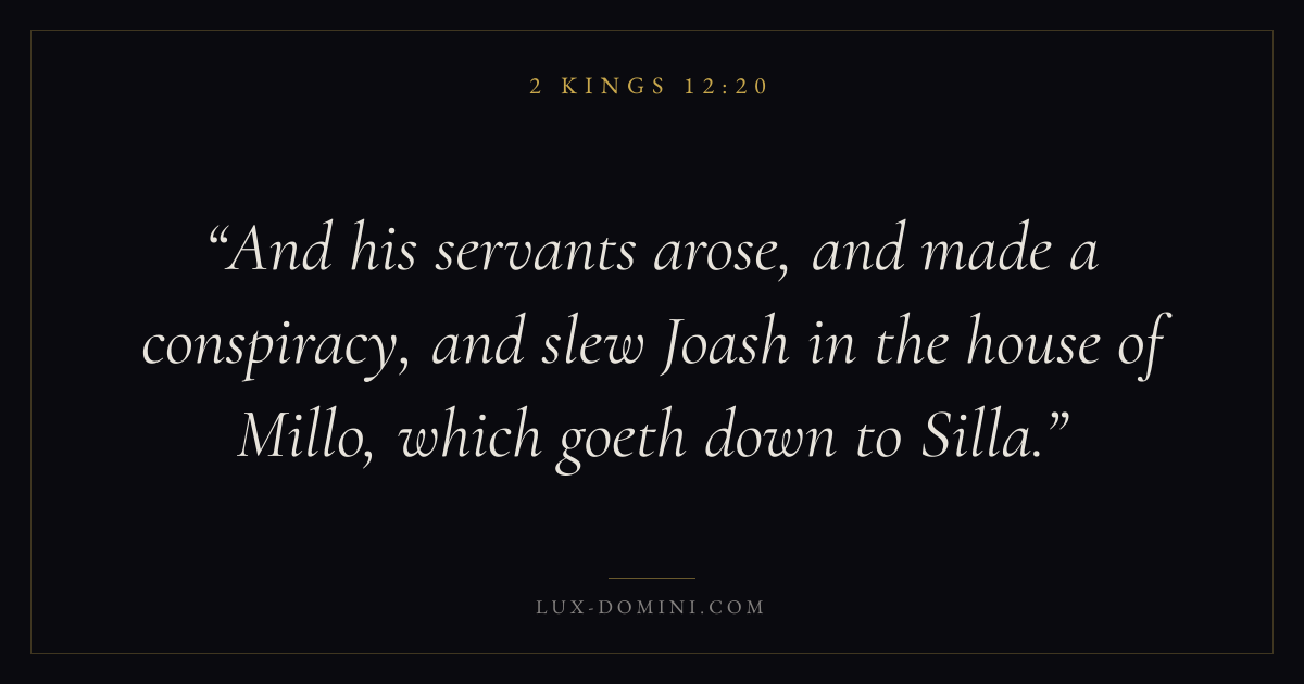 And his servants arose, and made a conspiracy, and slew Joash in the house of Millo, which goeth down to Silla.