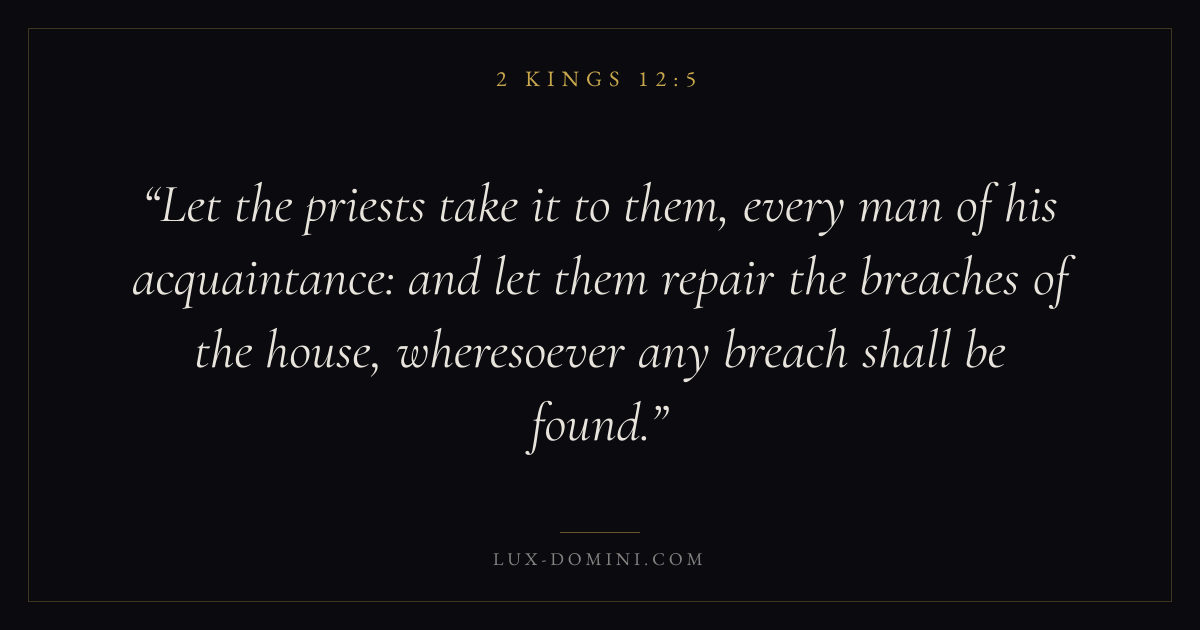 Let the priests take it to them, every man of his acquaintance: and let them repair the breaches of the house, wheresoever any breach shall be found.