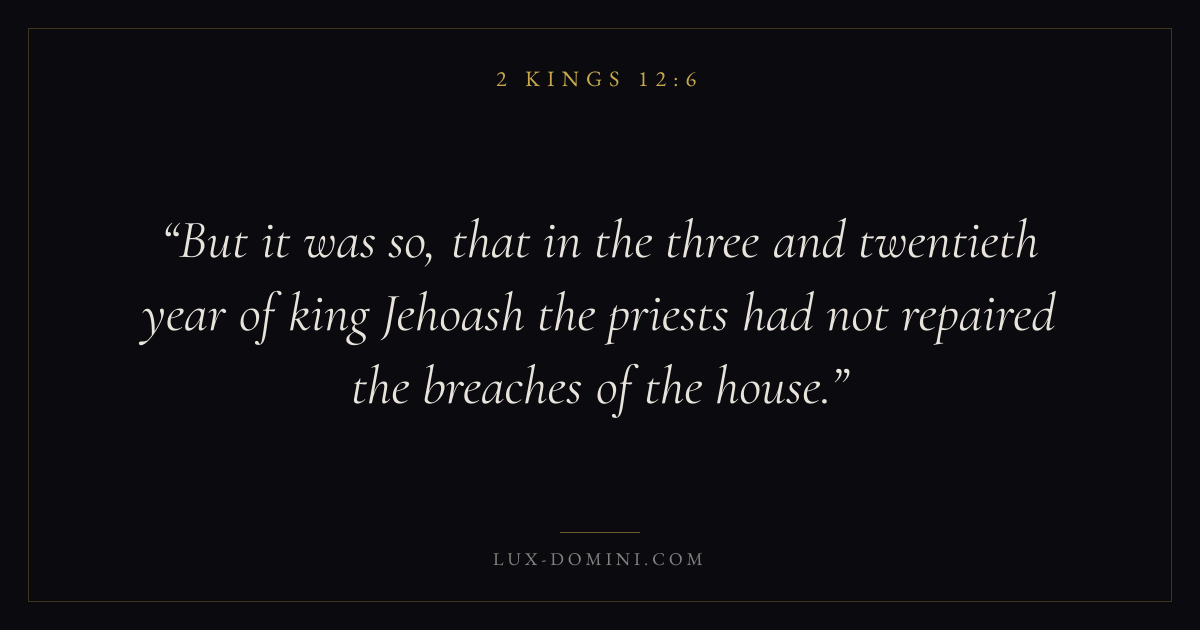 But it was so, that in the three and twentieth year of king Jehoash the priests had not repaired the breaches of the house.