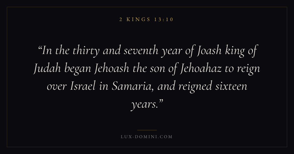 In the thirty and seventh year of Joash king of Judah began Jehoash the son of Jehoahaz to reign over Israel in Samaria, and reigned sixteen years.