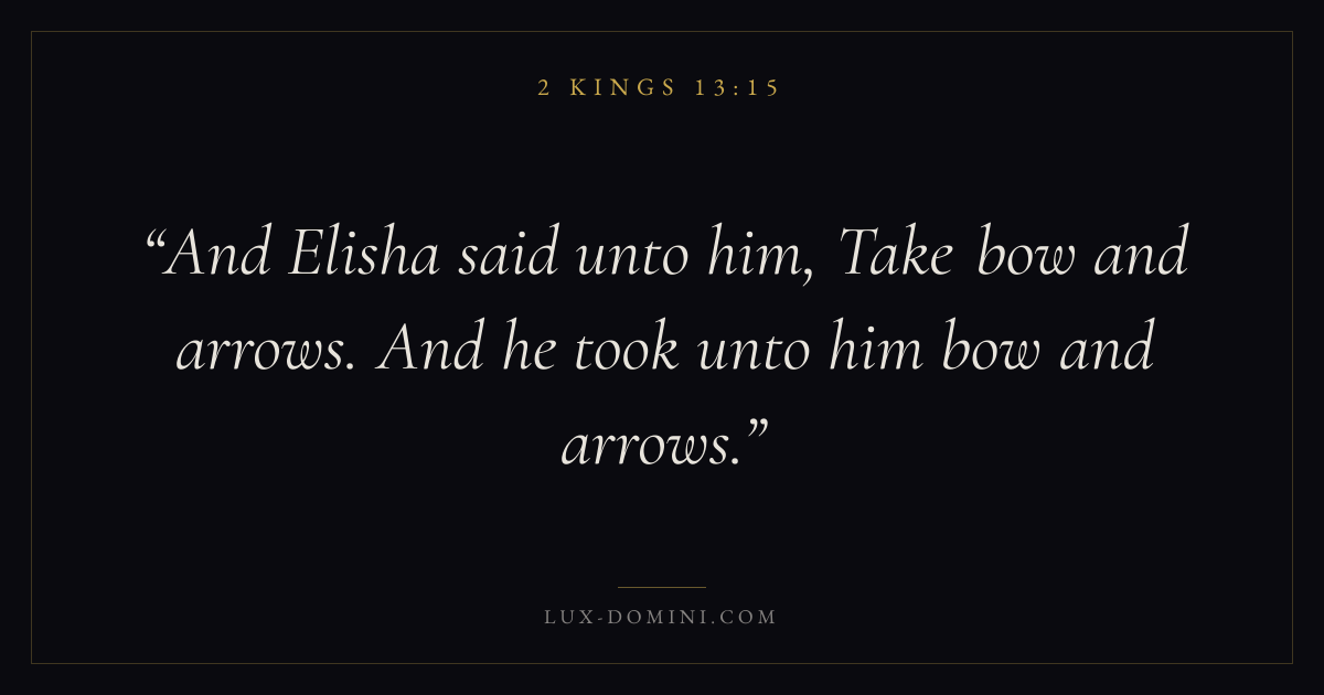 And Elisha said unto him, Take bow and arrows. And he took unto him bow and arrows.
