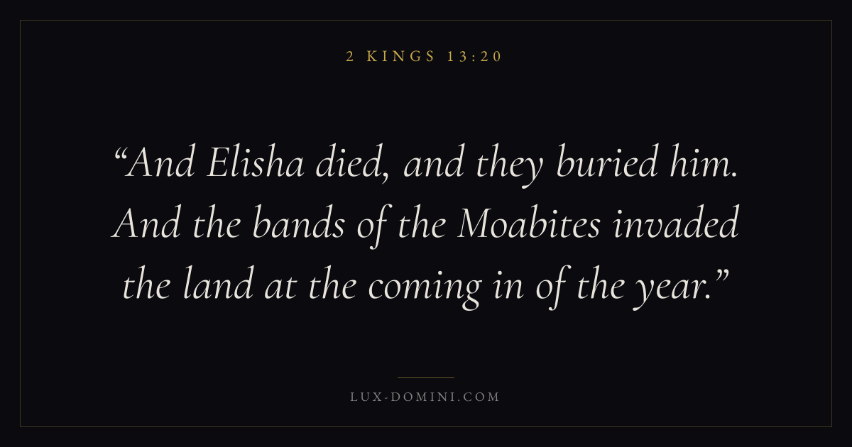 And Elisha died, and they buried him. And the bands of the Moabites invaded the land at the coming in of the year.
